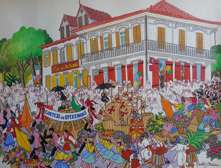 The artist was well known to the business community, especially within the travel industry. International airlines and government tourist offices collected and displayed her paintings. Those of Scandinavia, Israel, Portugal and Australia sponsored her to visit their respective countries to create new works. Many of these original paintings, and lithograph copies in some cases, were widely disseminated for viewing, promotion and sale. Airlines which sponsored Ms. Strauss in her overseas travels or exhibited and promoted her works were SAS, El Al, Air France, Alitalia, Qantas, TWA and Lufthansa. Her work, admired by the public and critics alike, was often covered by the media.